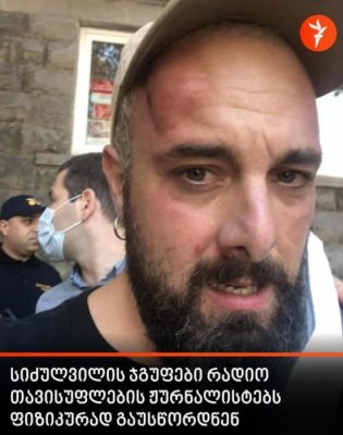 მარიკა გოცირიძე: უცებ ძალიან მძლავრი ძალადობა დაიწყო ჟურნალისტებზე. ყველა ერთ მხარეს დავდექით. დაიწყო ფურთხება, გინება, ფიზიკური ძალადობა, ნაცემი არიან ჩვენი ოპერატორები, ერთი ძალიან მძიმედ დაშავდა ზურა მანაგაძე, რომელიც საპატრულო ეკიპაჟის მანქანაში ჩემთან ერთად ზის. არ ვაპირებდით ტერიტორიის დატოვებას, თუმცა, საპატრულო პოლიციის ეკიპაჟის თანამშრომლებმა ძალით ჩაგვსვეს მანქანაში, როგორც თავად ამბობენ, უსაფრთხო ადგილას მივყავართ. ამ ადამიანების აგრესია ჟურნალისტებზე გაურკვეველი მიზეზის გამო იყო. ჟურნალისტური საქმიანობის განმავლობაში პირველად შემეშინდა ასე ძალიან.
