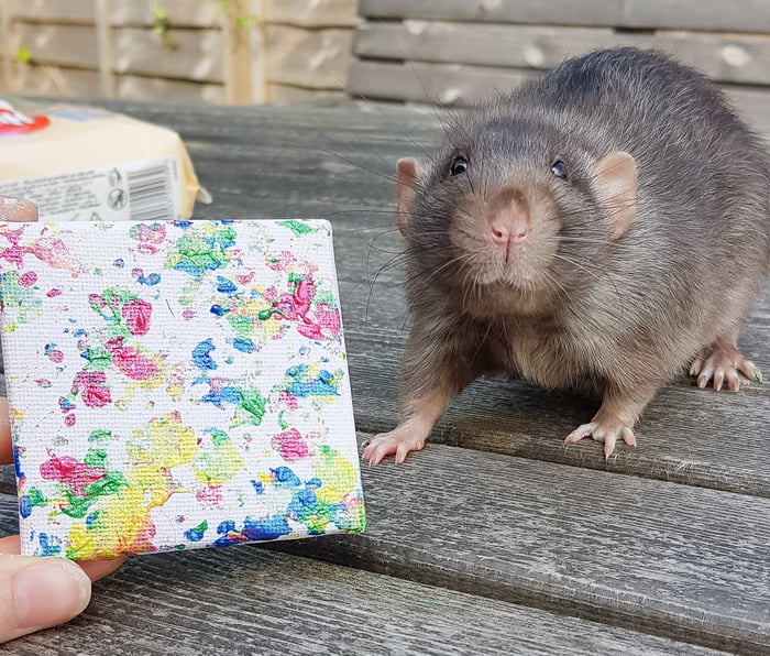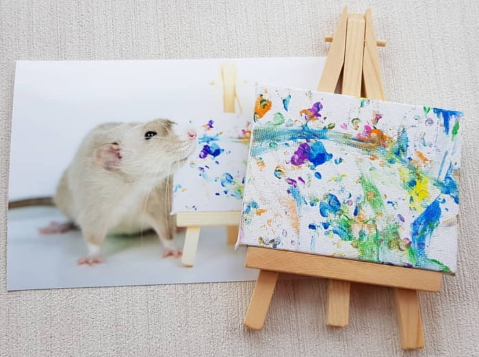 ამიტომ მინიატურულ ტილოებს ვირთხებს აზლევდა, რომ მათ დაეხატათ რამე, შემდეგ კი ფოტოებს უღებდა.